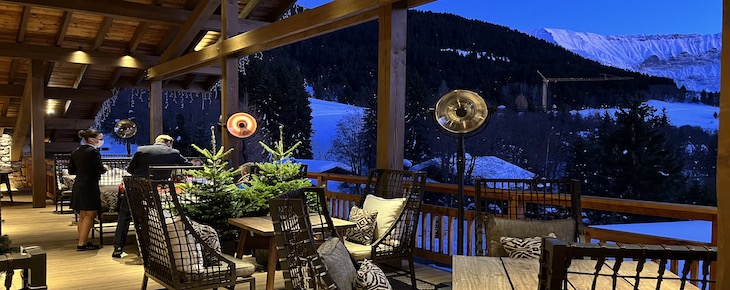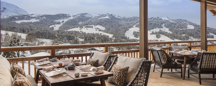 Outdoor dining with spectacular mountain views at Four Seasons Hotel Megeve www.fourseasons.com/megeve